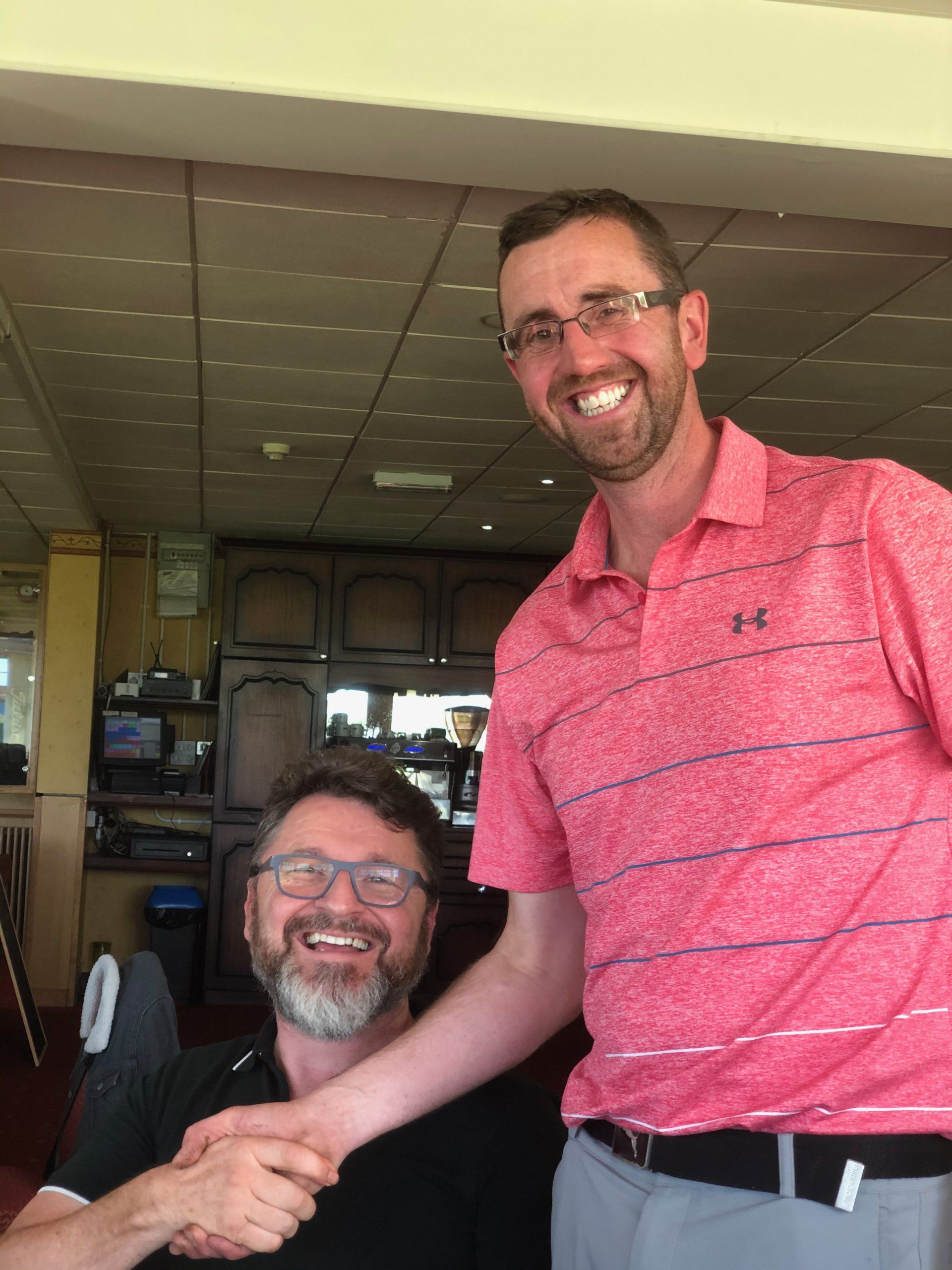 On a blustery day where the wind could have overcome the golf an excellent match came to the head on the final green with Pete MacManus lifting the prestigious Matchplay trophy for the first time. In a pendulous match shifting one way then the next - it was just one errant duff from Mark Murphy and an excellent bunker shot from Pete that made the difference. Congratulations Pete!